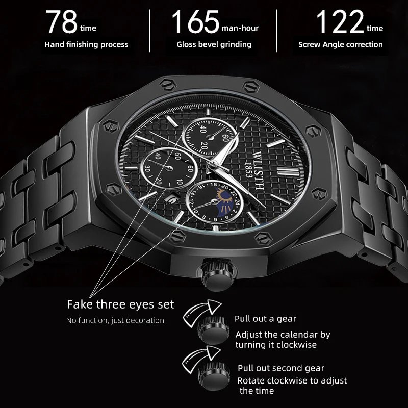 This men’s luxury wristwatch combines elegance and functionality, making it an ideal accessory for both business and casual settings. Crafted with a full stainless steel body, it ensures durability and a sleek appearance. The quartz movement provides precise timekeeping, while the waterproof feature offers protection against splashes and brief immersion in water. Additional functionalities may include date and week displays, as well as luminous hands for visibility in low-light conditions. Available in various color combinations, this timepiece caters to diverse style preferences.